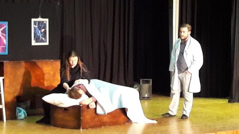 Für den Jahrgang 9 und 10 ging es um ein sehr ernstes Thema, nämlich wie der schüchterne Junge Sydney auf die schiefe Bahn gerät und zu Alkohol und Drogen greift. Seine perfekten Eltern hatten aber doch eine perfekte Zukunft für ihn geplant…was wird nun aus Sydney und wer ist eigentlich schuld an der ganzen Sache? Die Stille im Publikum ließ darauf schließen, dass auch die älteren Schüler durch die Schauspieler gefesselt waren. Als Sydney auch noch ins Krankenhaus kommt und um sein Leben bangt, wird wohl auch dem letzten klar, wie gefährlich Drogen und Alkohol sind.