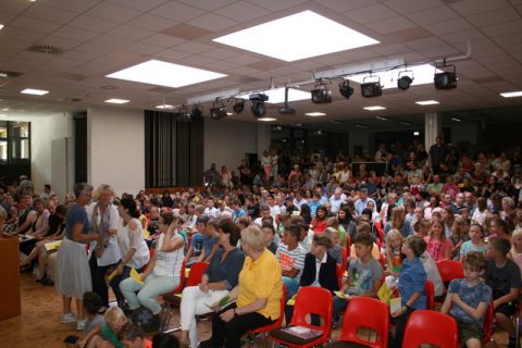 Das diesjährige Motto der Einschulung „Hoch hinaus“ scheint auf den ersten Blick schon sehr ambitioniert. Jedoch kann es für die neuen Schülerinnen und Schüler der IGS Rodenberg als eine Art „Arbeitstitel“ für die kommenden Jahre verstanden werden: sich Ziele setzen, etwas wagen, über sich hinauswachsen, aber auch seine Grenzen erkennen. Die Klasse 6c und Schulleiterin Heike Bode-Vogt präsentierten und interpretierten den Song ganz speziell für diesen neuen Jahrgang.