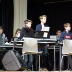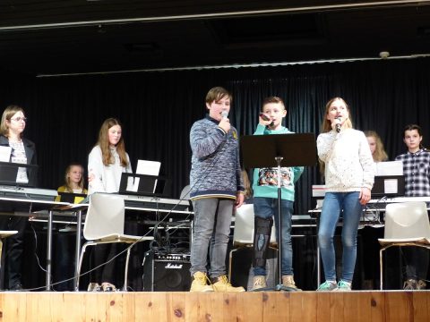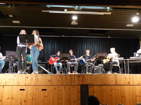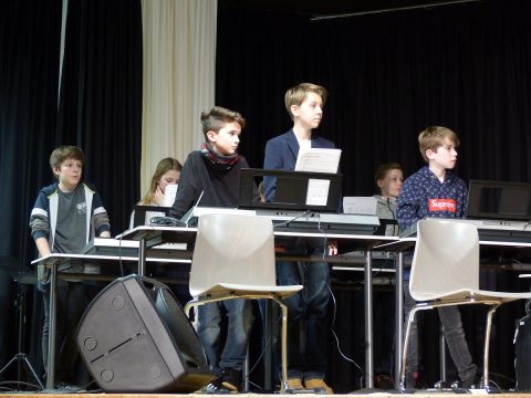 Die seit einem halben Jahr bestehende Klasse 5c eröffnete das Konzert mit ihren Keyboardstücken „Die Moldau“ und „Walking Dance“. Ihren ersten öffentlichen Auftritt mit ihren Keyboards meisterten sie mit Bravour. Auch ihre sängerischen Fähigkeiten stellten sie anschließend mit „80 Millionen“ von Max Giesinger unter Beweis. Die Band „Elina & friends“ führte mit ihren drei Liedern eine tolle Mischung von aktuellen deutsch- und englischsprachigen Pop-/ Rockliedern auf. Im Anschluss begeisterten die Keyboardklasse 6c mit einem reinen „Tom Kit“-Stück und den zwei bekannten Stücken „Skip to my Lou“ und „Bad Moon Rising“, die von einzelnen SchülerInnen sängerisch untermalt wurden. Der Band WPK konnte an dem Abend seine enorme Steigerung seit dem letzten Auftritt vor vier Monaten beim Tag der offenen Tür unter Beweis stellen. Den Abschluss machte die Band „Manual Operation“, die sowohl aus SchülerInnen dieser Schule als auch anderen SchülerInnen besteht. Vor allem das Stück „No Roots“ ließ das Publikum keine andere Wahl als mit zu wippen und zu klatschen. Dank der tollen Akteure und der wie immer reibungslos funktionierenden Technik durch die gut vorbereitete Bühnentechnik-AG konnte das Publikum ein tolles vielseitiges Konzert erleben und zwei Stunden von dem Können der SchülerInnen begeistert werden.