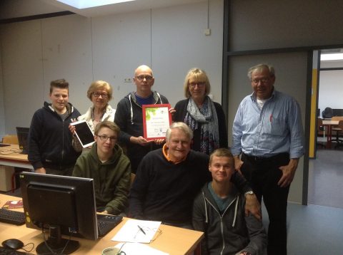 Auch im 7. Jahr seines Bestehens erfreut sich der WPK SHS-Schüler helfen Senioren weiterhin großer Beliebtheit. Zurzeit werden etwa 10 bis 12 Kundinnen und Kunden von Schülern des 9. und 10. Jahrgangs kompetent und fachmännisch betreut. Viele Fragen und Probleme im Umgang mit Laptop, Tablet und Smartphone werden in der bewährten 1:1- Betreuung intensiv bearbeitet und nahezu immer zur großen Zufriedenheit der meist älteren Menschen gelöst. Hier nimmt der Kursleiter, Herr Göhler-Jetschmann die Teilnahmeurkunde eines Schülerfirmenwettbewerbs von unserer Schulleiterin, Frau Bode-Vogt entgegen.