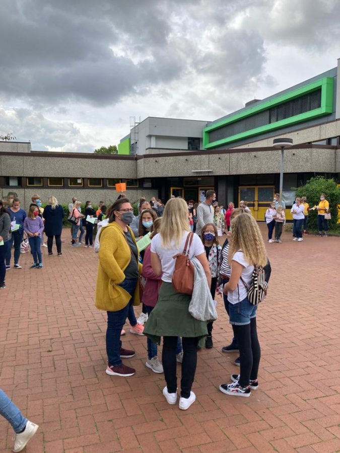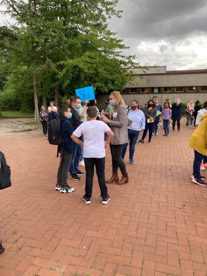 Die Eltern durften draußen warten und bekamen viele Informationen. Herr Balkamis begrüßte die Eltern der neuen Fünftklässler und teilte Uhrzeiten und Abläufe für die ersten Schultage mit. Anschließend begrüßte die Schulleiterin Frau Bode-Vogt die Eltern und informierte über die aktuellen Infektionsschutzmaßnahmen an der IGS Rodenberg. Danach war noch Zeit, individuelle Elternfragen zu beantworten. Nach etwa einer halben Stunde kamen alle Kinder zurück auf den Schulhof und wurden von ihren Eltern in Empfang genommen. Aufgeregte, aber glückliche Kinder verließen danach langsam mit ihren Eltern den Schulhof. Natürlich war in diesem Jahr alles anders als sonst, aber alle haben versucht, das Beste aus dieser Situation zu machen. Nun wünschen wir den Fünftklässlern einen guten Start und viel Freude und Freunde an der IGS Rodenberg.