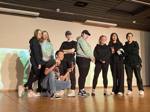 Im vergangenen Schuljahr (2021/22) haben wir an einem besonderen Tanz-Musik-Projekt gearbeitet. Es handelt sich um die „Schaumburg West Side Story“, eine Geschichte, die von zwei jungen Menschen, Sergej und Fatima, handelt. Sie verlieben sich ineinander, doch die Familien sind verfeindet und stellen sich dem Paar in den Weg. Dies haben wir als Gruppe versucht tänzerisch und schauspielerisch darzustellen, dabei haben wir sowohl Choreografien in einer größeren Gruppe als auch alleine getanzt. Um die zehn verschiedenen Kapitel zu erarbeiten, haben wir uns regelmäßig dienstags und mittwochs getroffen. Dadurch, dass die Musikstücke sehr unterschiedlich waren, konnten wir in sehr viele verschiedene Tanzrichtungen rein