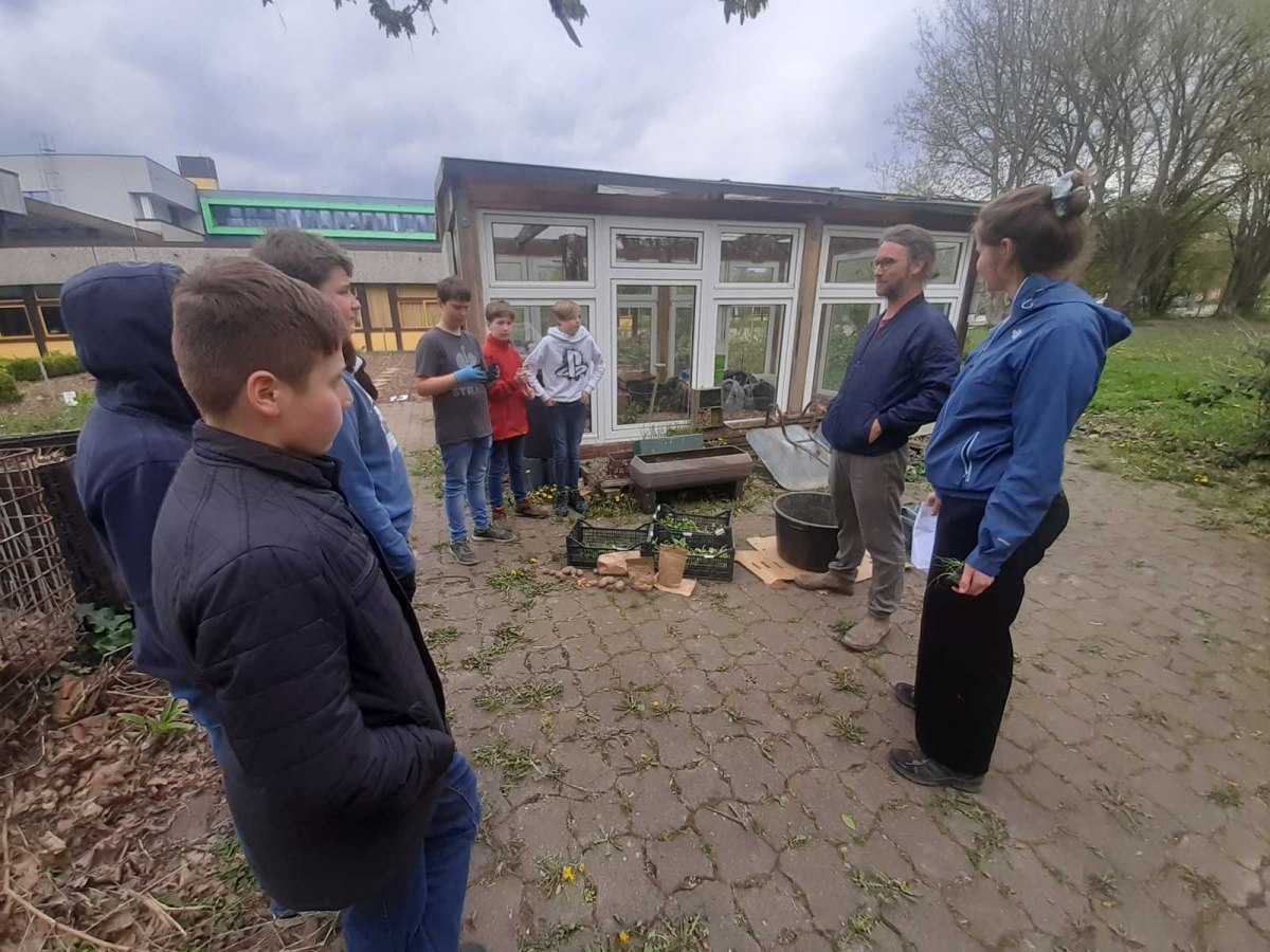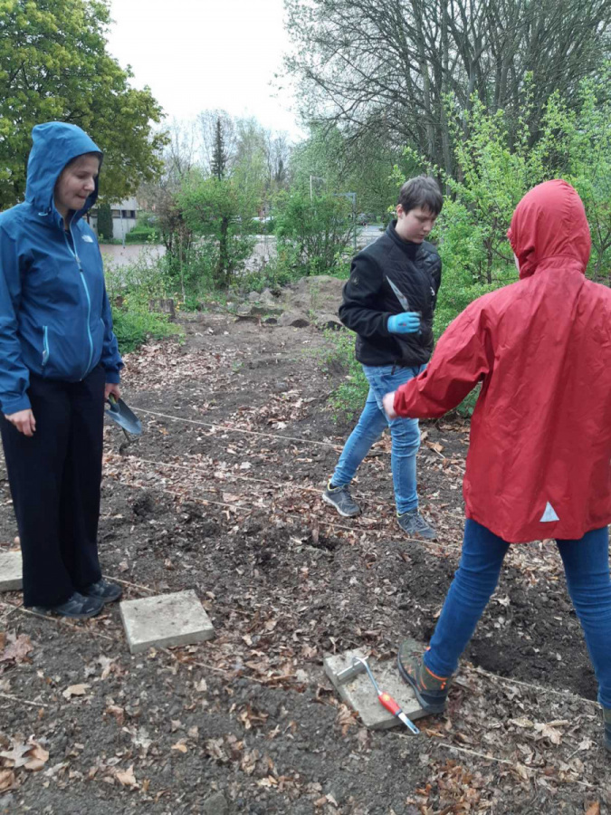 Dank der guten Vorarbeit der Schülerinnen und Schüler des naturwissenschaftlichen Wahlpflichtkurses von Frau Ettelt, die unmittelbar nach den Osterferien mit so genannten „vorbereitenden Tätigkeiten“ im Schulgarten der IGS Rodenberg betraut waren und dabei Beete umzugraben hatten und Anbauflächen abgesteckt haben, fiel der Startschuss „hinein ins neue Gartenjahr“ für die Mitglieder des Projekts „Natur und Garten“ von Herrn Hattendorf am 24.04.2023.