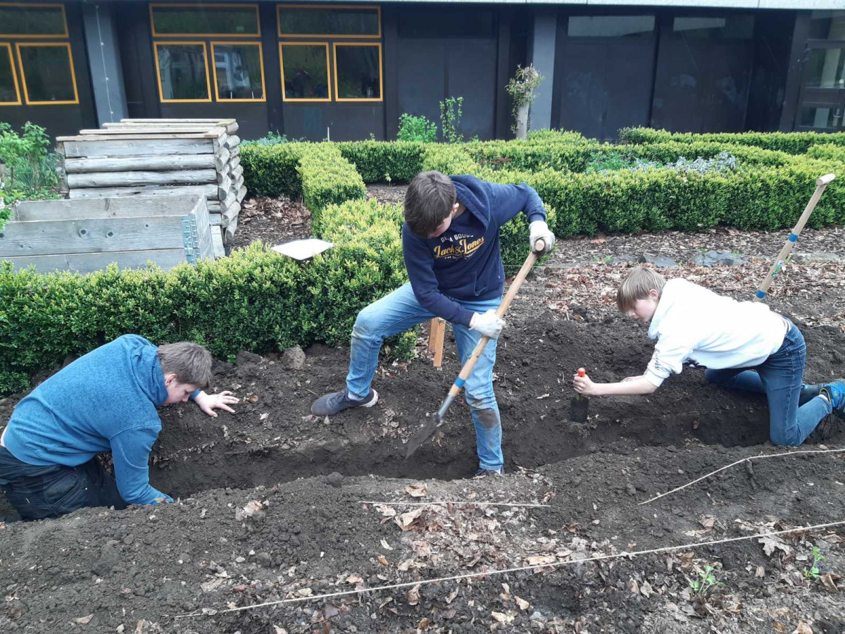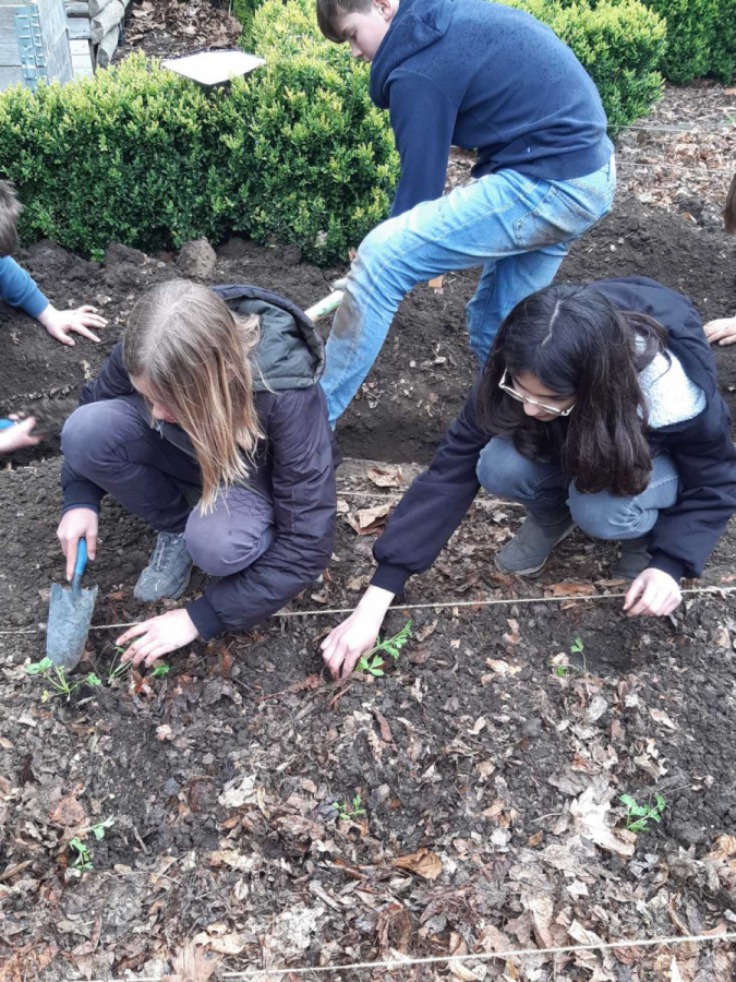 Am Ende des Nachmittagsunterrichts blickte man jedoch in weitgehend zufriedene Gesichter: Mangold, Frühlingszwiebeln, Kohlrabi, Kartoffeln und andere Gemüsepflanzen waren sicher an ihren Pflanzplätzen im Beet „untergebracht“.