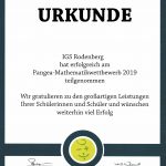 Die IGS Rodenberg freut sich über die erfolgreiche Teilnahme am Pangea-Mathematikwettbewerb 2019.